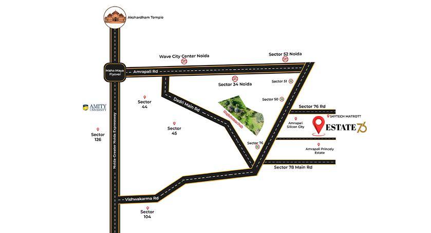 Strategically placed in the heart of Noida, Estate 76 offers unbeatable accessibility and a vibrant neighborhood, making it one of the most desirable plotted zones in the region.